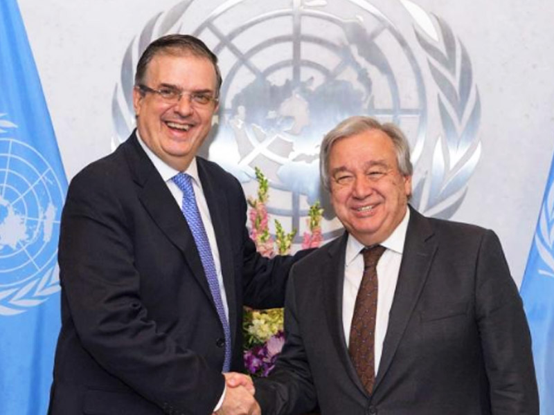 En la sede de las Naciones Unidas en Nueva York, el canciller mexicano informó que después de reunirse con António Guterres, secretario general de la ONU, México se comprometió a apoyar a los gobiernos de El Salvador, Honduras, Guatemala, con el propósito de dar respuesta a los centroamericanos en condiciones de migración forzada por pobreza e inseguridad en sus naciones.