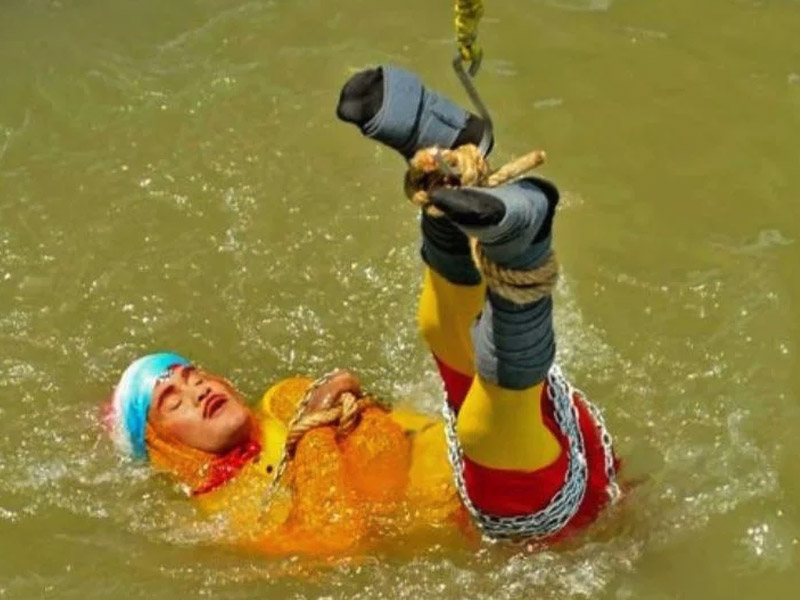 Fue el pasado domingo cuando el mago se ató de manos y pies con cadenas, cuerdas y candados y fue sumergido de cabeza en el río, frente a la mirada de sus espectadores y familiares pero su cuerpo no apareció hasta el lunes.